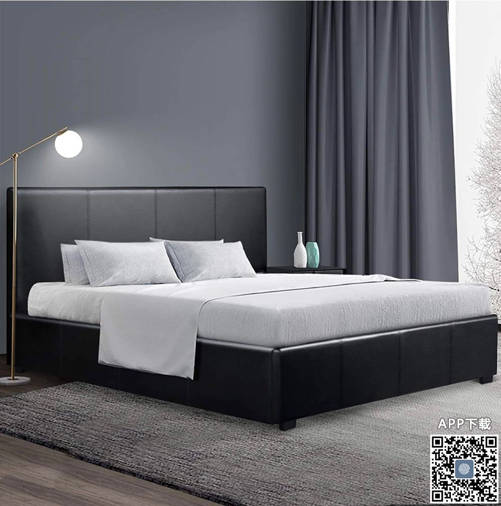 • 黑色皮质床 queen size Queen size 黑色