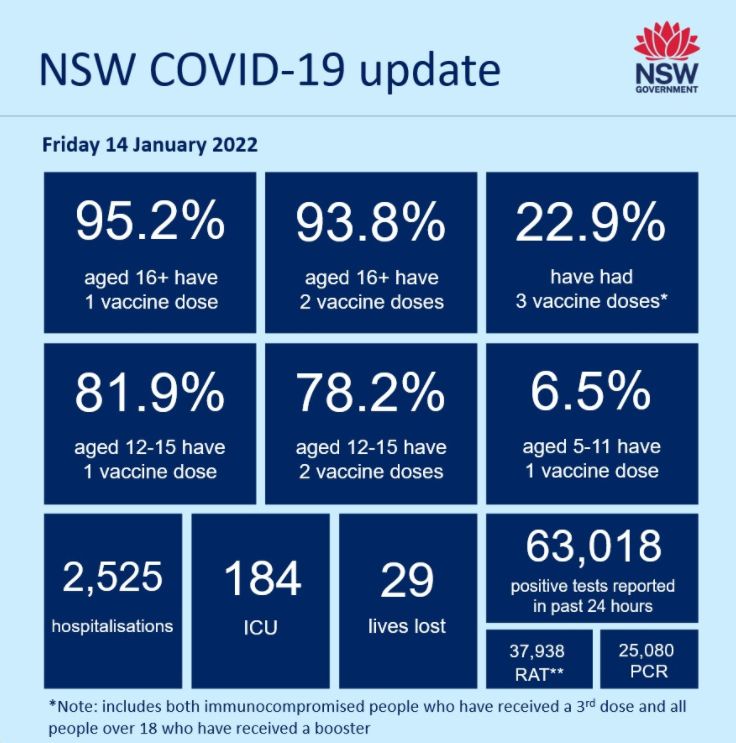 新州录得63,018个新增确诊病例和29人死亡,这是迄今为止该州在24小时内记录的最高死亡人数。 维州住院病例数再次达到记录,该州又有18名COVID-19患者死亡。 周五维州录得34,836个新的阳性测试结果,其中15,4 ...
