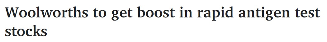 Woolworths已经提高了其快速抗原检测的供应量,数十万个试剂盒正在澳大利亚各地的商店出售。 他说:"目前的限制是每位顾客一包,并定期进行审查。" 此前,总理斯科特·莫里森在一次采访中被 ...