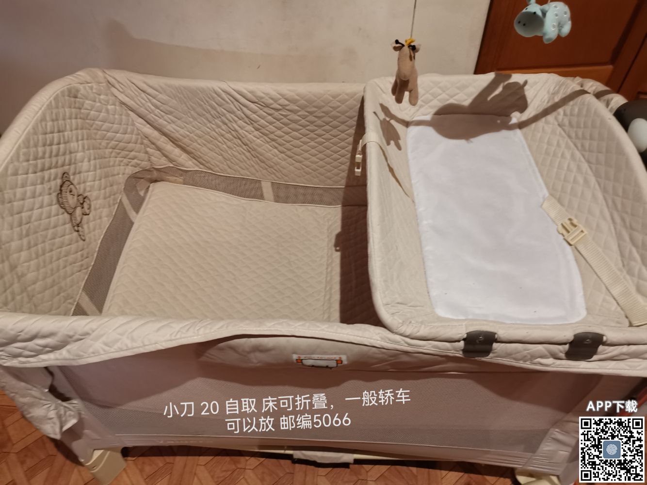 宝宝围床 保存良好 已经洗了很干净 挂饰有一只小动物掉了 其他没毛病 带轮子可推动 小刀 20 自取 床可折叠,一般轿车可以放 短信 0435 955 931 短信 0435955931