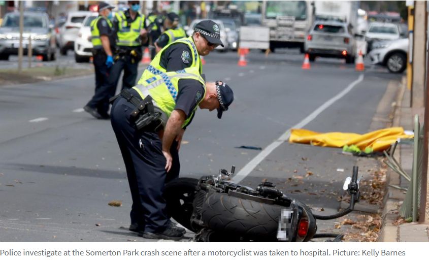 一名Hove男子在Somerton Park的Sacred Heart College前,骑着他的哈雷戴维森摩托车撞上Stobie杆后死亡。 在附近企业Trio Sign Solutions工作的Tyson Dohnt说,摩托车的噪音最初引起了他的注意。 "这 ...