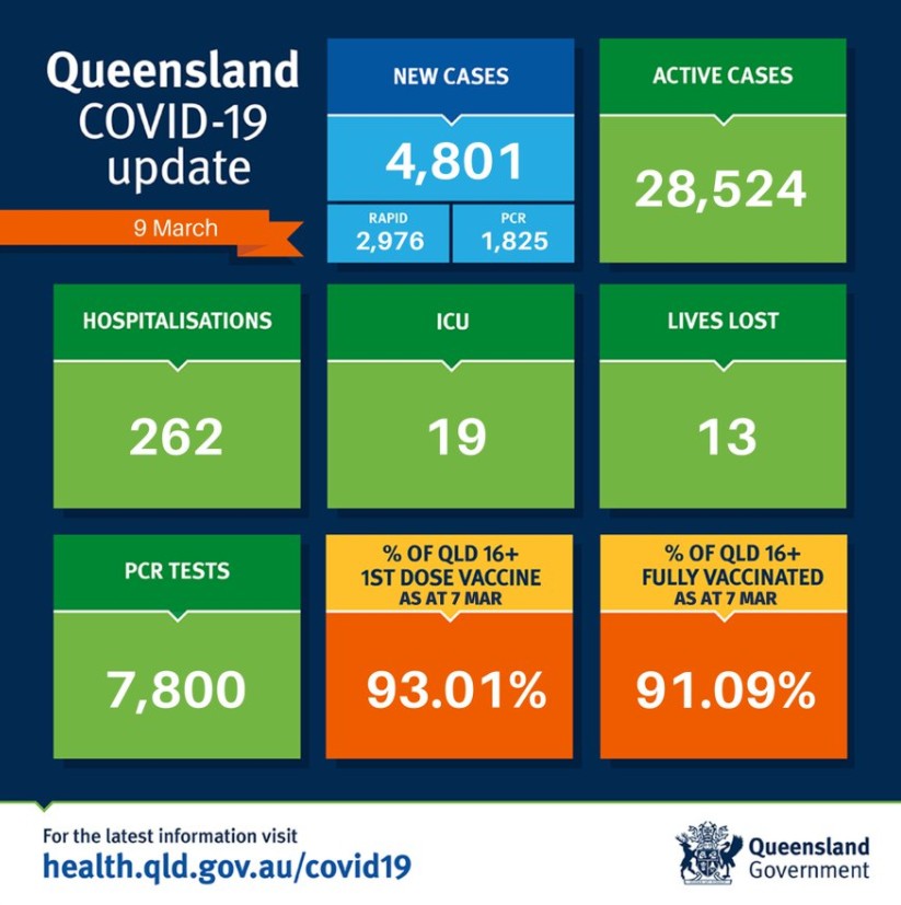 昆州过去24小时新增4801例确诊,13例死亡。 其中PCR检测1825例,快速检测2976例。 目前全州活跃病例为28524例。 目前共有262人因covid住院,19人住在重症监护室。 全州16岁以上人群两针接种率为91.09̴ ...