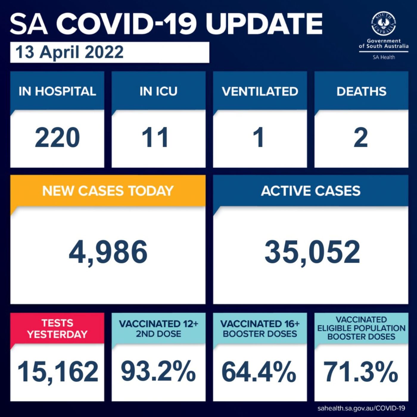 在过去的24小时里,南澳新增4986例确诊病例,2人死亡! 目前有35,052个活跃病例。 南澳卫生部证实,有2人死亡,分别是一名80多岁的妇女和一名40多岁的男性。 目前有220名COVID-19患者住院,其中11人在重症 ...