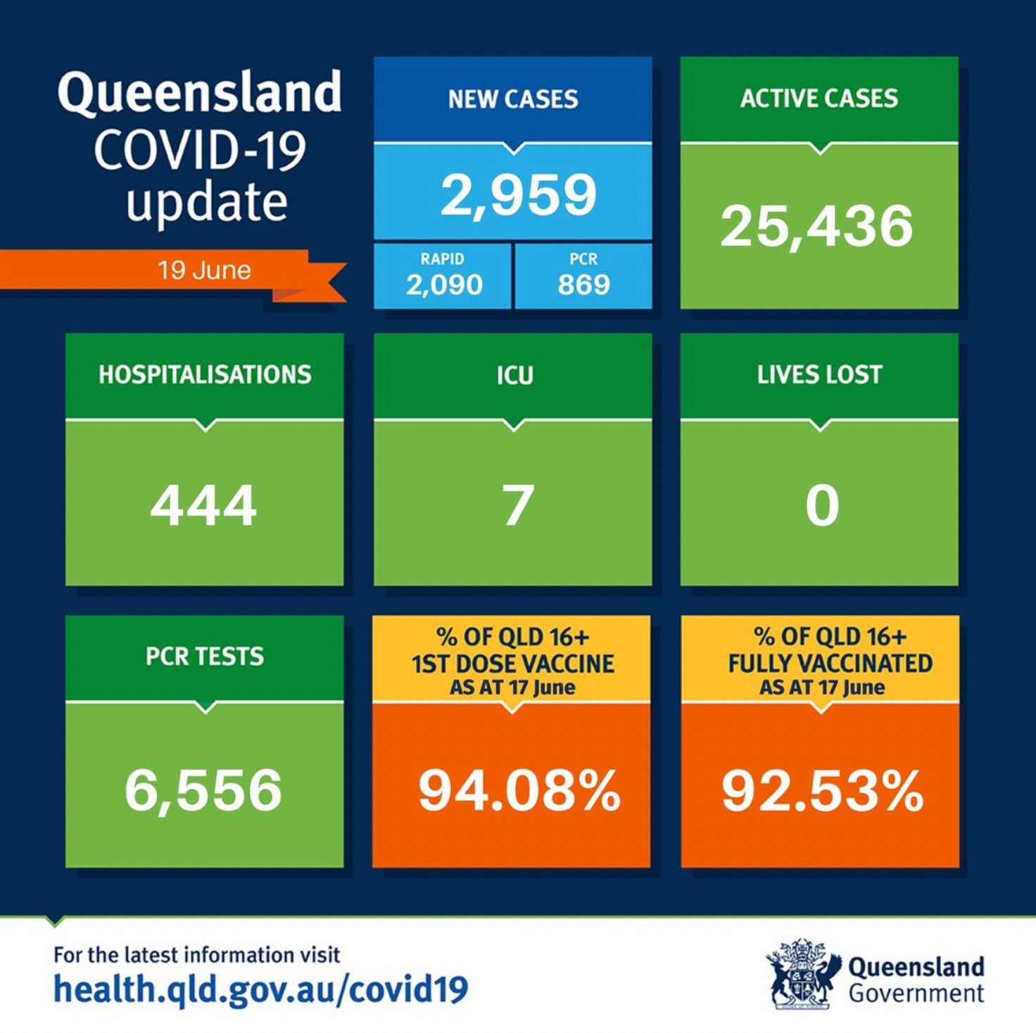 在过去24小时里,昆州新增2959例,无人死亡。 其中PCR检测869例,快速检测2090例。 目前全州活跃病例为25436例。 共有444人因covid住院,7人住在重症监护室。 全州16岁以上人群两针接种率为92.53%。 图文 ...