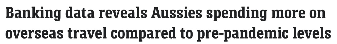 新的银行数据显示,与疫情前的水平相比,澳大利亚人在海外旅游上的花费有所增加。 “众所周知,澳大利亚人喜欢周游世界。随着本周晚些时候学校假期和欧洲夏季的到来,我们预计,海外旅游支出将继续增长。R ...