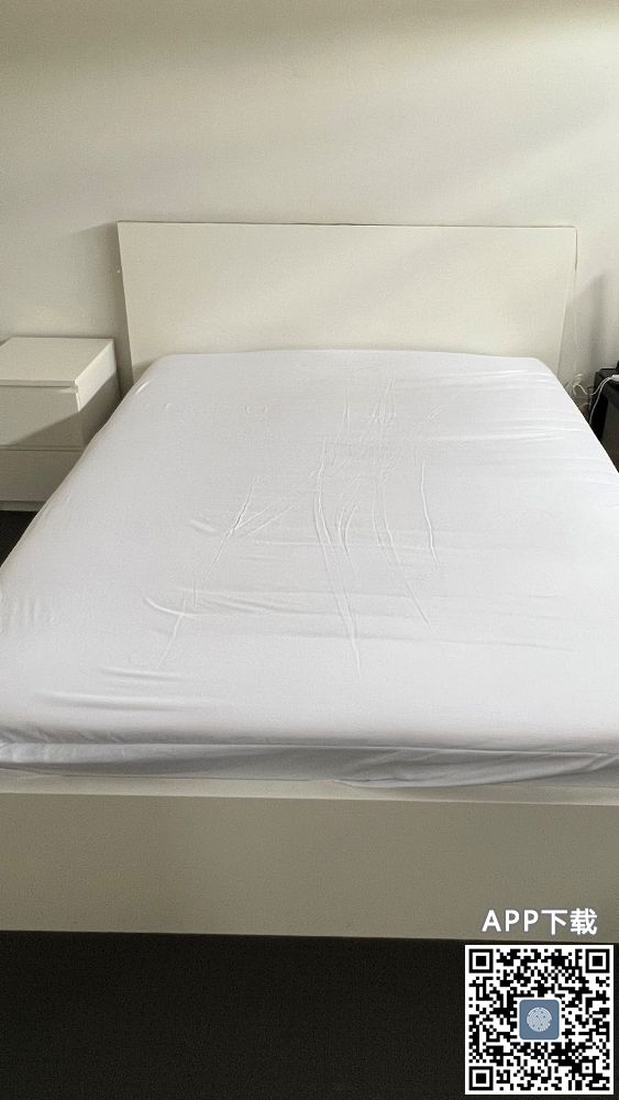 宜家 Queen Size 床架+床垫+床头柜 质量上乘 床垫柔软 床架结实 价格:$350 有意请扫码!