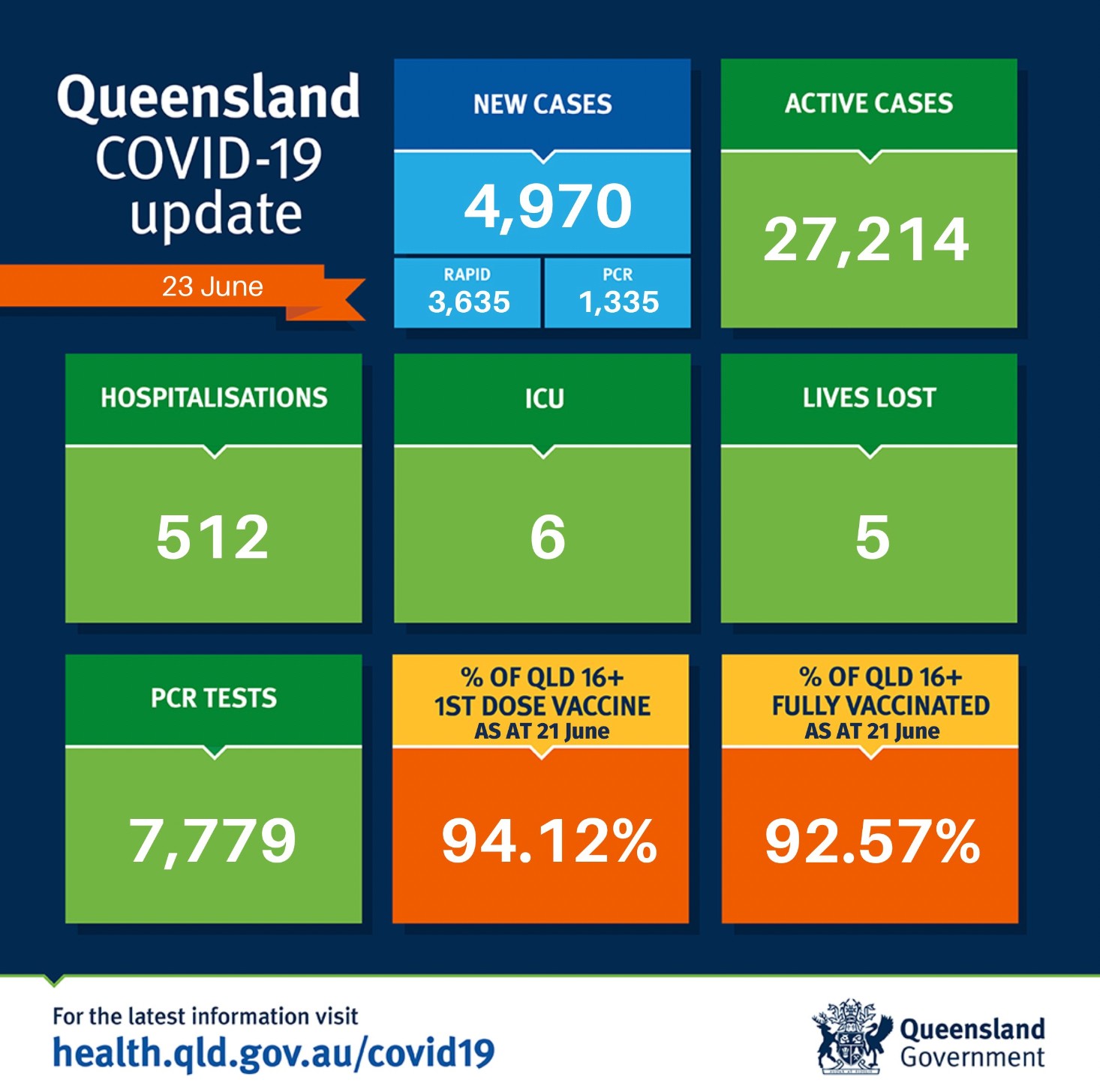 在过去24小时里,昆州新增4970例,5人死亡。 其中PCR检测1335例,快速检测3635例。 目前全州活跃病例为27214例。 共有512人因covid住院,6人住在重症监护室。 全州16岁以上人群两针接种率为92.57%。 图文 ...