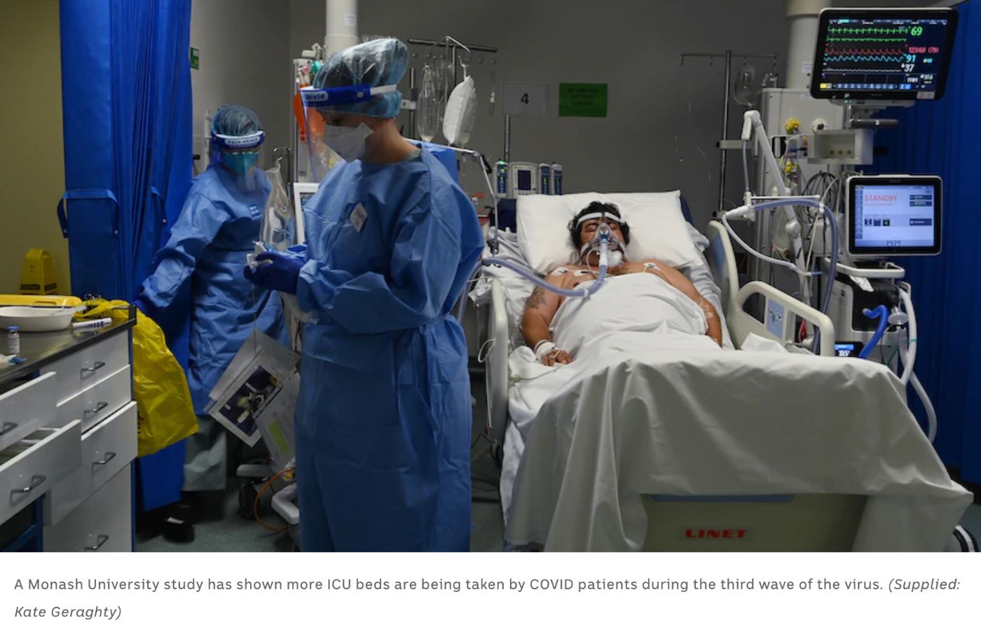 澳洲第三波疫情ICU患者是前两波总和的4倍! 新的研究表明,澳大利亚的第三波COVID-19疫情期间,进入重症监护室的病人是前两波疫情总和的四倍。 由于Delta变体比早期毒株的毒性更强,因此更有可能需要重症 ...