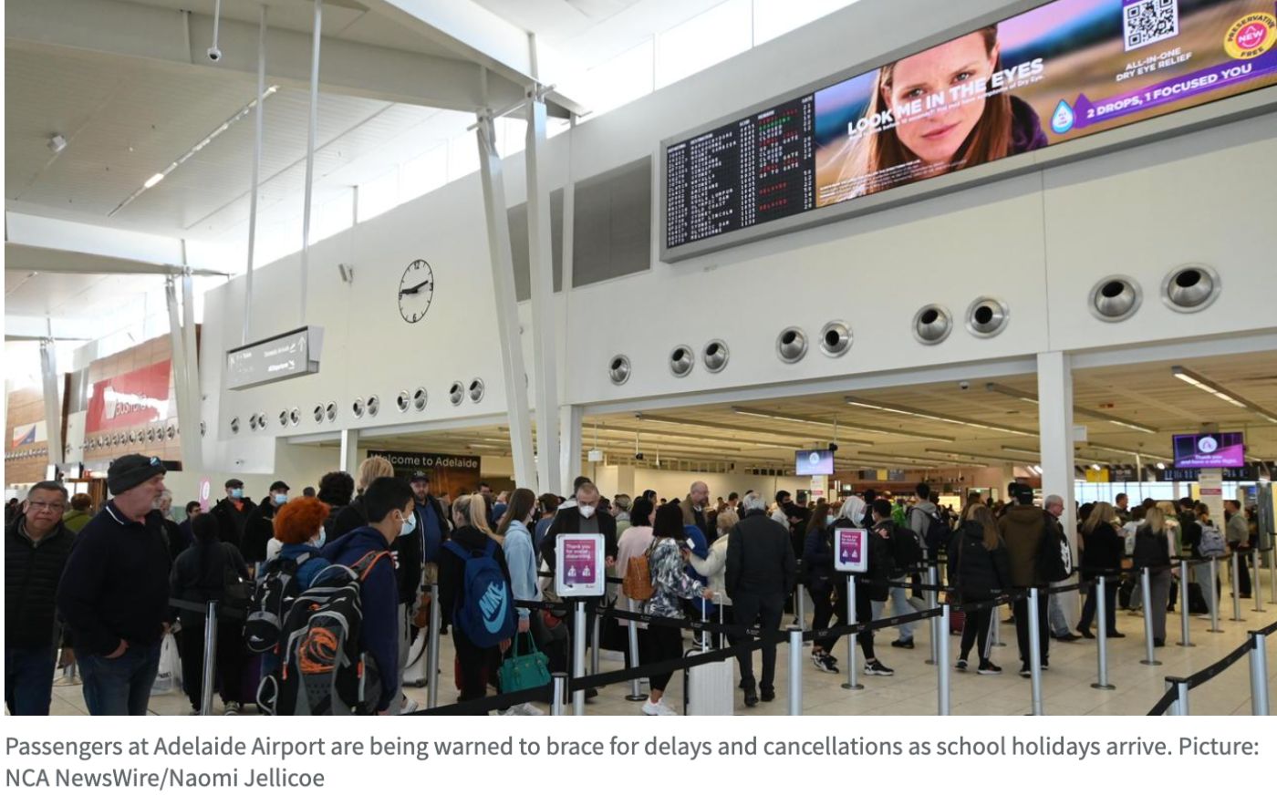 今天早上,一辆载有数百个空玻璃瓶的卡车在前往阿德莱德机场的路上发生车祸,随着学校假期的到来,航班取消给人们出行带来极大影响。 阿德莱德机场发言人敦促旅客在出发前与航空公司联系,因为学期末的混乱局 ...