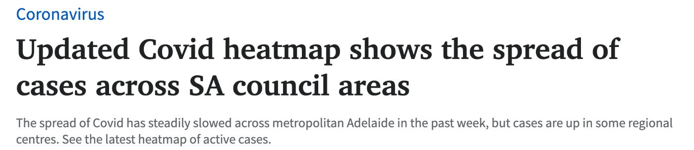 南澳卫生部最新的Covid热图显示,过去的一周里,阿德莱德大都市的活跃病例数稳步下降。 在Campbelltown,每108人中有一人感染Covid。 只有Onkaparinga和Port Adelaide Enfield现在有超过2000个活跃病例。 但 ...