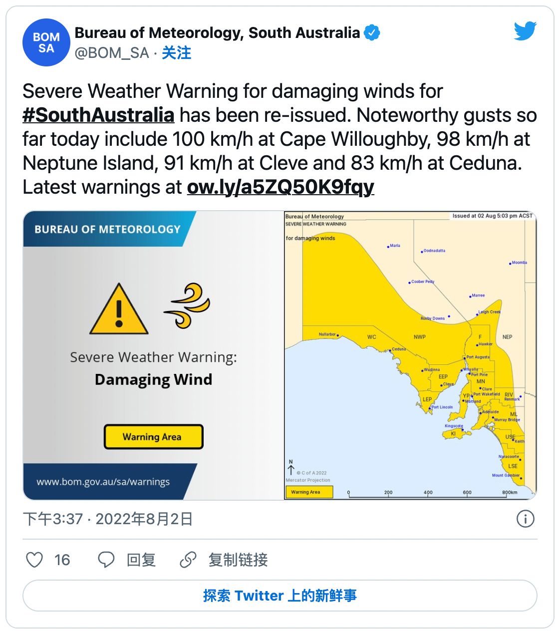 由于恶劣天气继续袭击南澳,该州已经启动了蓝色警报。 此前,当局警告南澳人,本周,阿德莱德的降雨量可能达到一个月的降雨水平。 7月的降雨量只有大约32毫米,比该月66毫米的平均降雨量少了一半。 图文 ...