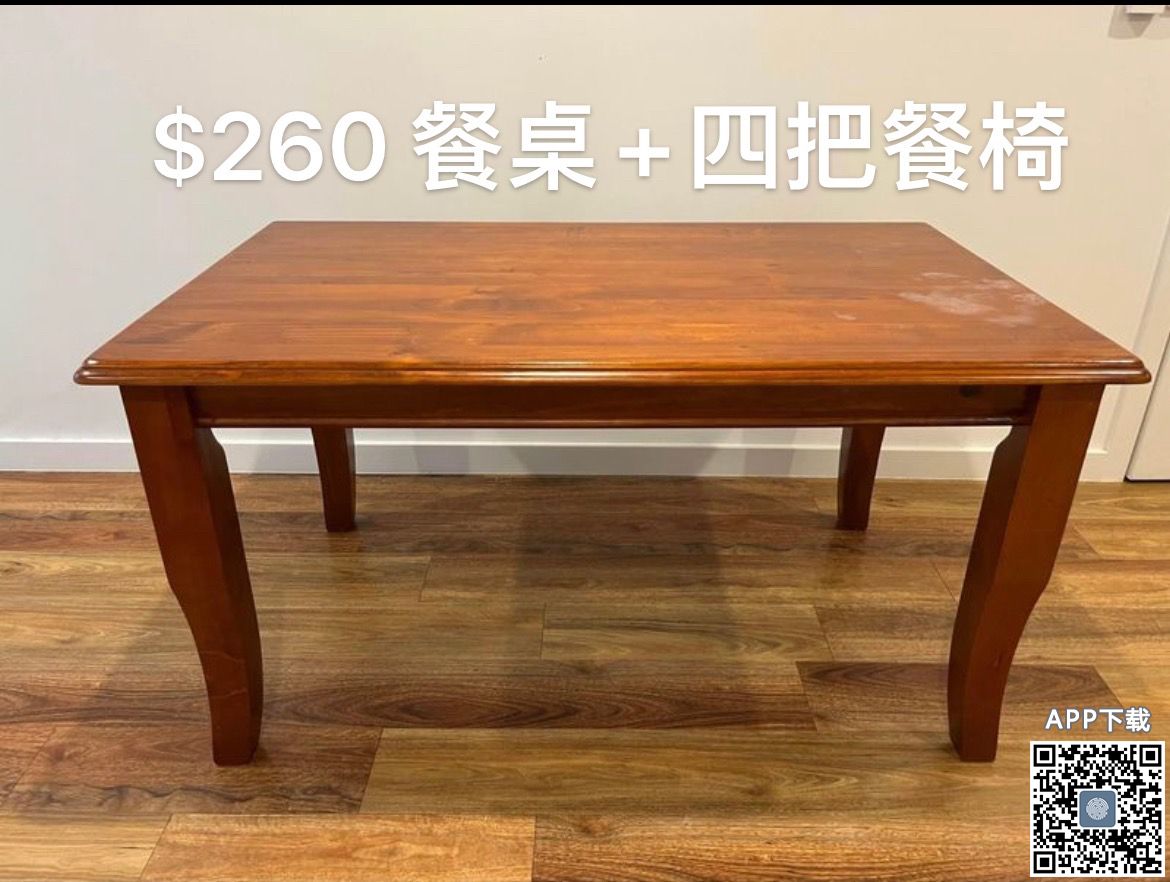 餐桌四把餐椅共$260 Tranmere自取 微信:yinxingrenwei