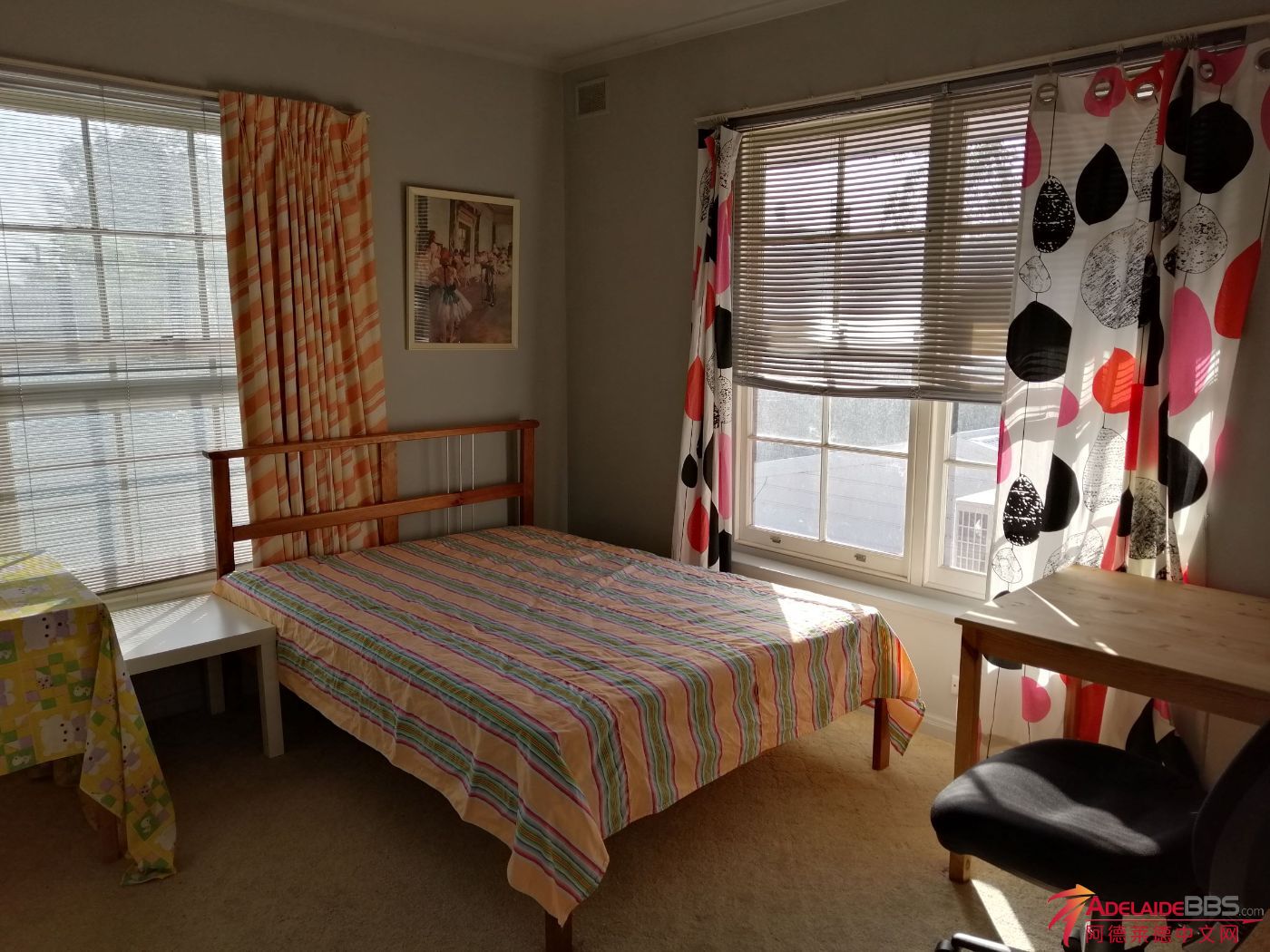 阿德莱德东区Burnside, 现有一间大房出租, 双人床。 每周$180, 可随时入住。 本社区环境优美, 交通及购物方便。有三路bus经过 (141,142,820)。可直达city, 方便学生到阿大及南澳大学就读。欢迎不吸烟无宠物人 ...
