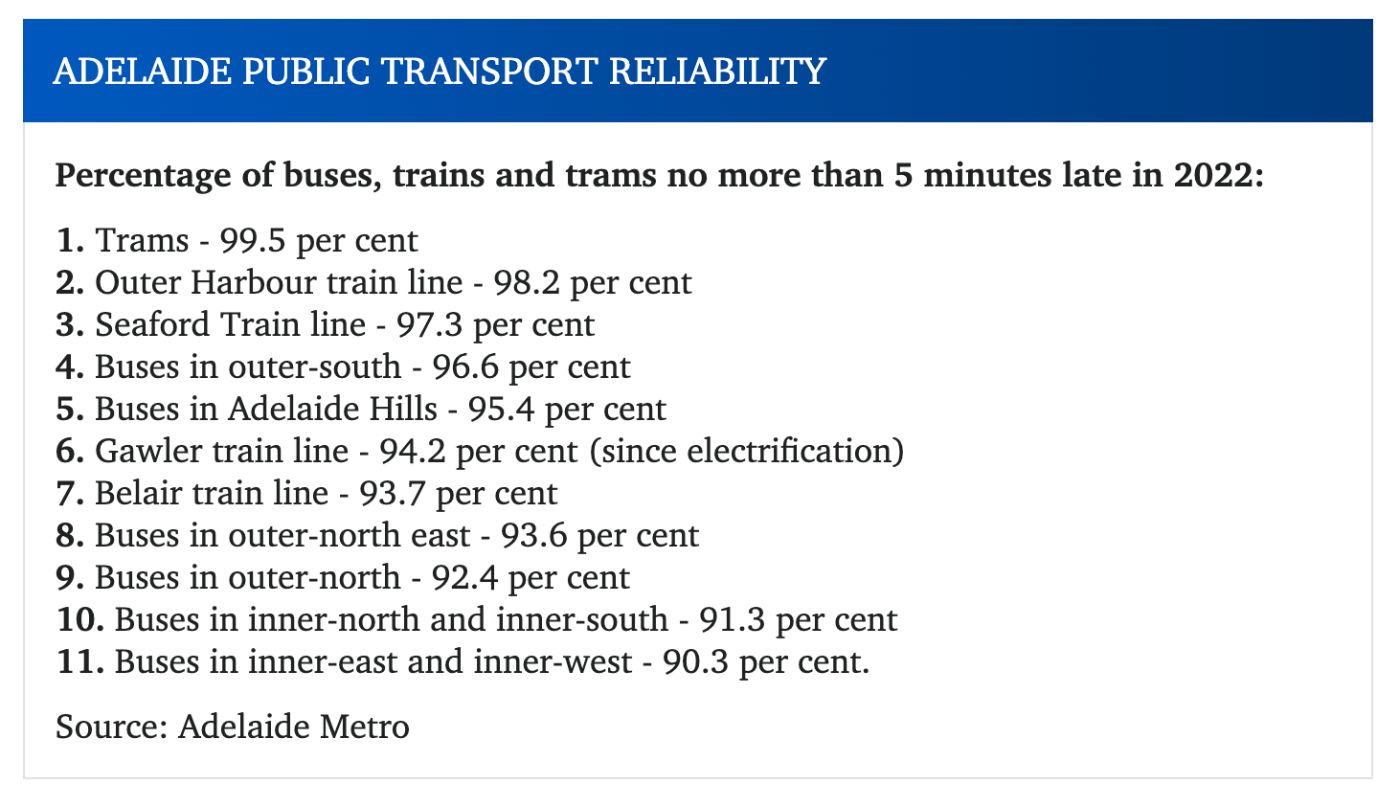 阿德莱德地铁公司的数据显示,内东和内西郊的公交车是该市最不靠谱的。 与此同时,阿德莱德有轨电车线路的延伸没有使其可靠性降低,今年99.5%的评级优于2017年的记录97.7%。 从2021 年到2022年,公交车的总体 ...