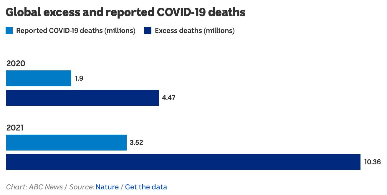 世界卫生组织在《自然》杂志(Nature)上发表的一篇论文显示,新冠疫情在全球造成约1483万人死亡,比此前统计的报告死亡人数500多万高出近三倍。 最新统计数字显示,从2020年到2021年,新冠在全球造成了1330 ...