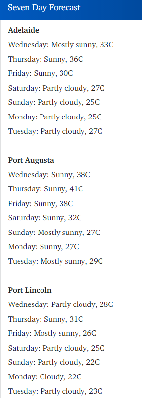 在上周的凉爽天气之后,南澳将经历一段炎热和干燥的日子,当局发出热浪警报。 州紧急事务局发出警报,周三热浪将席卷North West Pastoral和West Coast区。 在北部,Port Augusta预计周三最高气温为38℃ ...