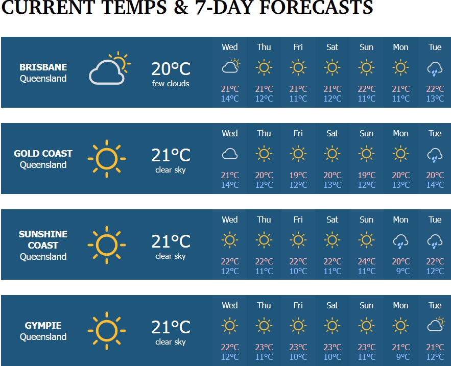 布里斯班天气预报:本周最低温度突破10℃以下