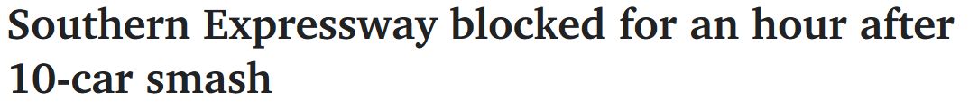 在O'Halloran Hill靠近Panalatinga Rd出口Southern Expressway的上,发生了一起十车连环相撞事故,交通严重延误一小时,后已恢复正常。 没有受伤报告。 此前,由于停电,Greenhill Rd和Glen Osmond Rd交叉口的 ...