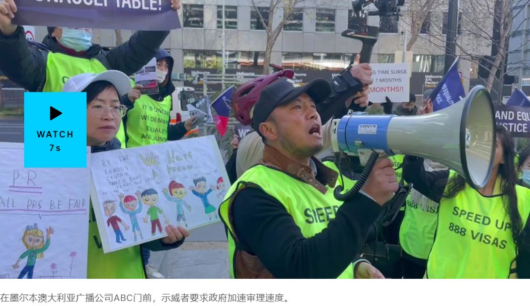 近日,超过100名永久商业创新和投资计划(BIIP)签证(或称888签证)申请人在澳大利亚广播公司(ABC)墨尔本总部前举行示威抗议活动,呼吁联邦政府加快审理他们的永居签证。 据悉,另一场抗议活动在悉尼举行。 ...