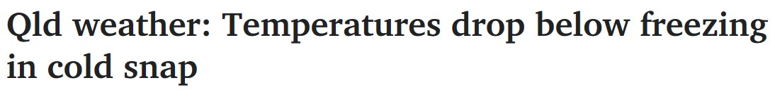 昆州部分地区气温已降至零度以下,温度计读数骤降至-4.8摄氏度。昆州居民正在经历晨间的寒意。 再往西,Roma的气温降至1.4摄氏度,St George降至2.8摄氏度,Charleville同样降至2.8摄氏度。在Capricornia和 ...