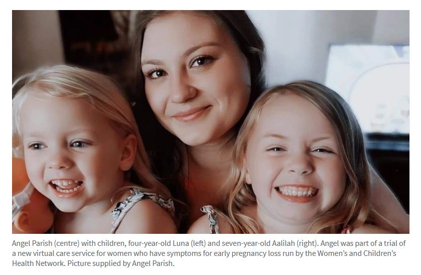 Angel Parish 在怀第三胎 12 周时,开始感到腹部痉挛和疼痛。但幸运的是,她参加了一项全国首创的虚拟医疗服务试验。 由妇女儿童健康网络(Women's and Children's Health Network)运营的新线上妇女健康评 ...
