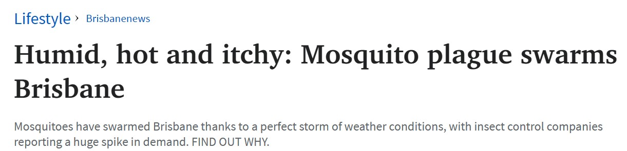 布里斯班蚊虫肆虐,瘙痒难耐、周身起包! 由于天气多变,蚊子蜂拥而至布里斯班,昆虫控制公司报告称需求大幅飙升。 Skinner警告说,随着气候变化和气温升高,昆州的蚊子数量会越来越多。 负责城市标准 ...