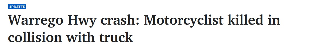 据悉,一名摩托车手在Plainland的Warrego Hwy上与一辆卡车相撞后死亡,预计事故将造成严重交通延误。 预计交通将严重延误。 西行方向的交通堵塞至 Hatton Vale,该处已采取交通分流措施。 这名骑手是本周 ...