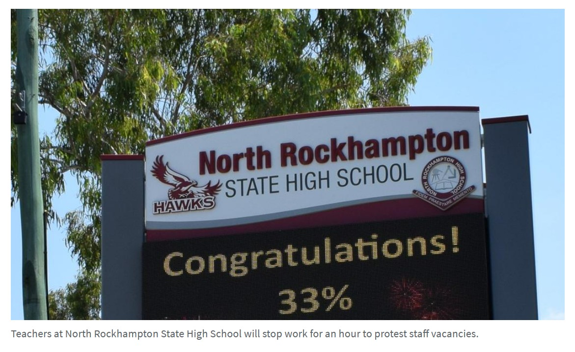 据悉,昆州三所学校的近200名教师将于下周停工,以解决导致班级人数过多和教师身兼多课人员空缺问题。 Coxen说,由于教育部门的转岗评级制度,North Rockhampton, Sarina和 Biloela等地区学校面临着独特的 ...