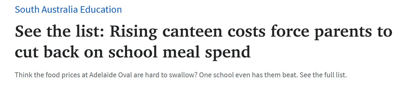 据悉,有媒体调查了南澳43所学校各种常见食品的价格,包括Pie、香肠卷和火腿三明治,发现这些食品的价格都更贵了。 Tenison Woods Catholic Primary School的千层面售价也是11澳元,涨价幅度与Richmon ...