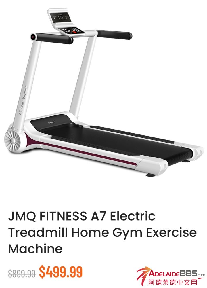 阿德莱德出二手闲置家用跑步机 出一台闲置跑步机: 【 JMQ A7 家用式可折叠跑步机】 原价$899.99,现在用不上不想在家里占地方,有人想要的话两位数出$XX,不过要来City 自提。 - 状况良好,功能正常可用 -除了包装 ...