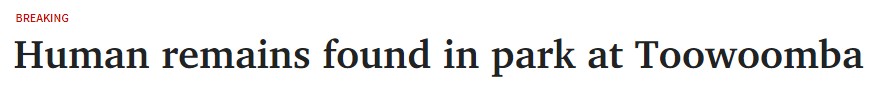 据悉,一市民在Toowoomba的一个公园发现了人类遗骸,警方已宣布犯罪现场。 警方发言人称,昨天下午3点,一名市民在发现这一恐怖事件后联系了警方。 昆州警察局代理副局长Mark Kelly说,这些遗骸是 ...
