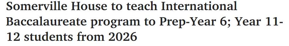 据悉,布里斯班的一所著名私校已申请成为昆州第六所开设初、高中学生IB国际文凭课程的学校。 Somerville House计划只在学前班至六年级开设国际文凭课程,然后让11年级和12年级学生在传统的ATAR课程和国际文凭课程 ...