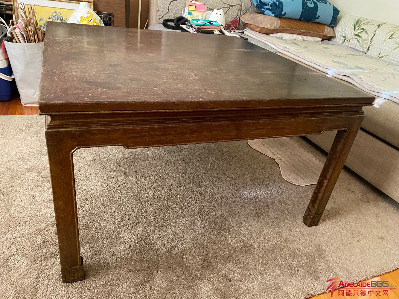 转手古典实木茶几,90cm长*90cm宽*52cm高,自取60刀,26 Avenue Rd,Frewville 5063,请电话联系0487716969,谢谢。