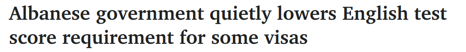 据《Dailytelegraph》8月8日报道,Albanese政府因悄然降低部分签证所需的英语测试分数而面临批评,联盟党称这一举措"不可持续",并警告这将加剧澳大利亚"失控"的移民问题。 据报道,联邦移民事务助理部长Ma ...