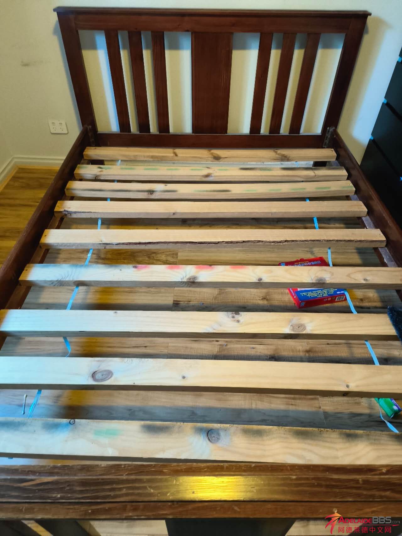 闲置1.5米*2米实木床,床垫便硬。价格:AUD100。电话:0406663035