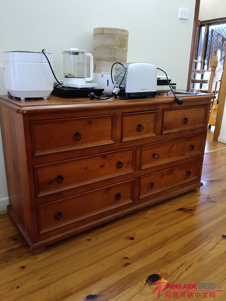 1.五抖柜1米5宽,实木。价格:40刀2.衣柜1