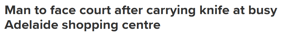 据《9news》12月23日报道,一名21岁男子在阿德北部某购物中心被查获携带刀具,将面临法庭指控。 目前尚无证据表明该男子计划以危险方式使用这把刀具。 警方已没收刀具并将其带离购物中心,随后以持有攻击 ...