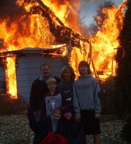 反正也控制不了火势了,不如全家合个影吧