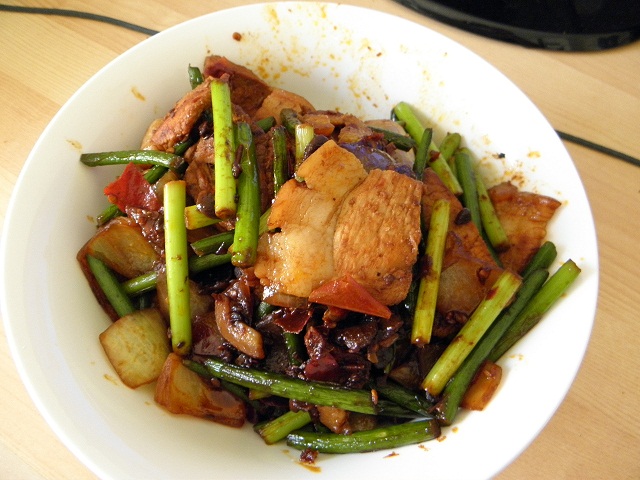 本帖最后由 johnz 于 2011-9-15 12:41 编辑 如题,味道凑合吧,只有郫县豆瓣,木有面酱(菜谱上有),操作简单,用时约40分钟,吃起来还挺下饭的…… 主料:猪腿肉,蒜苔,洋葱(貌似有青椒 黄瓜 胡萝卜的看起来 ...