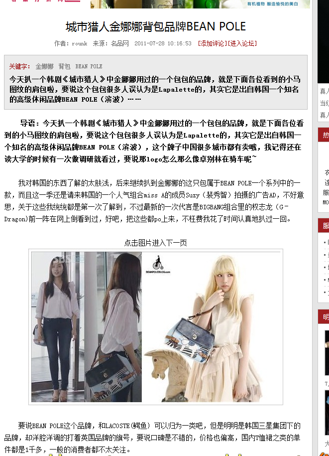本帖最后由 courch 于 2011-9-16 22:02 编辑 城市猎人多热多火我就不用说了吧 里面的俊男靓女够养眼 现在MM 们也可以背上金娜娜的那款包包啦 双色可选 同时超酷实用的骷髅包包& ...