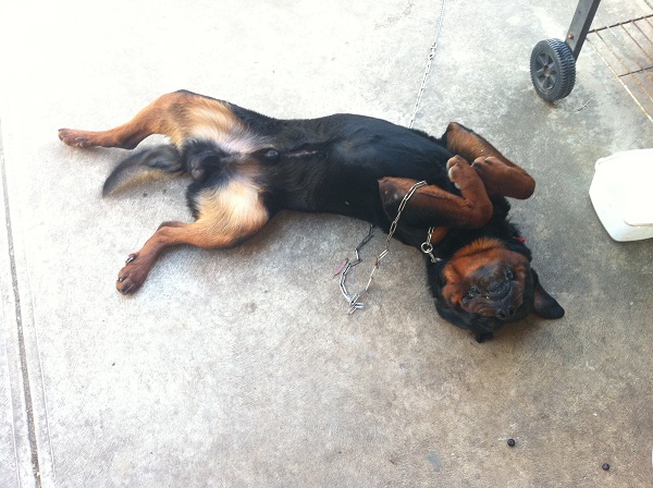 前几天训练我家狗狗躺下,刚刚照了他躺下的照片,真的是躺下了~