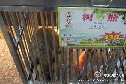 一位澳洲旅客声称,他在广东番禺某家饭馆就餐时,惊恐地发现他们竟然出售活着的考拉,并且在菜单上标注着“红烧”跟“清蒸”两种烹调方式。考拉的笼子上插着一张标签,表示这只考拉卖139元人民币一斤。 在 ...
