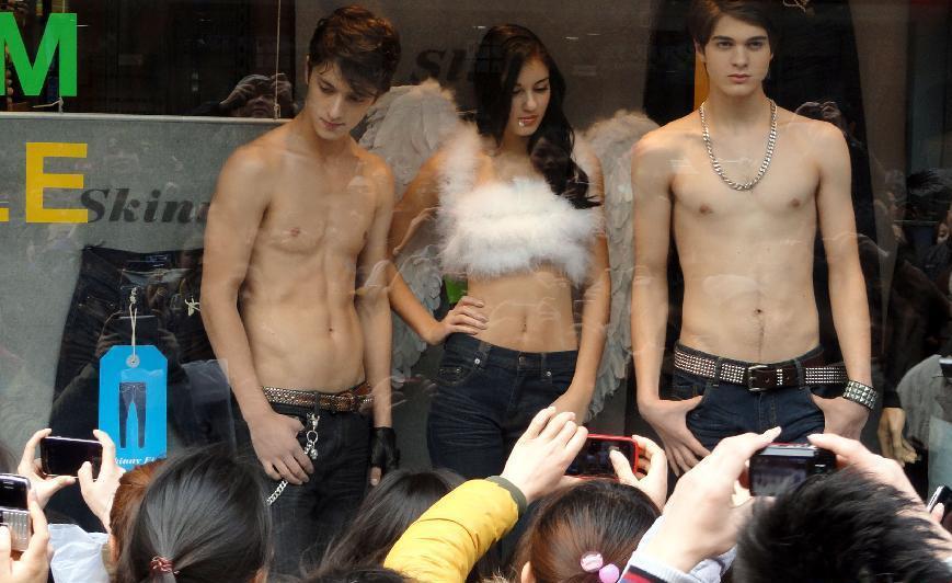 本帖最后由 mem 于 2012-3-13 21:11 编辑 3月11日,几名模特作为“活体衣架”在展示服装,吸引许多路人驻足拍照。 是真人
