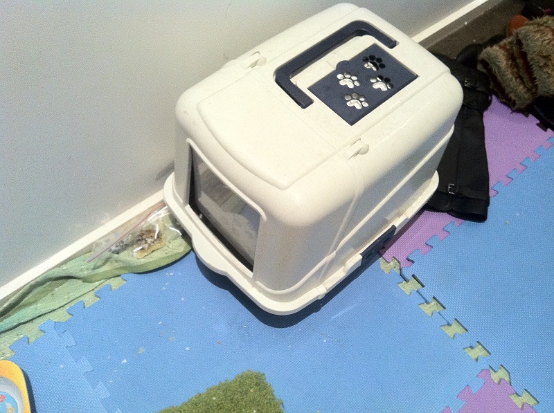 $20 因为要和小猫去悉尼的,用不着了。 这个挺好用的,我自己给它在里面加了个猫trail, 所以换猫砂的时候只要把trail 拿出来换就可以了, 很方便的。 门是活动的,宝宝可以自由进出。顶上有透气孔 ,可以夹香熏 ...