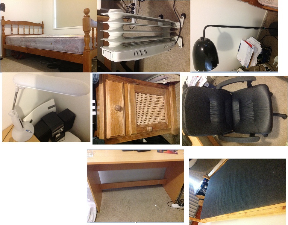 这周回国,所以诚心甩卖屋内家具。下面我给出图片和价格,因为马上回国所以价钱都可以商量。 电话 0426956206 李 QQ 241155220 queen size 实木床架+床垫 120刀(第一张图) 暖气片 10刀 落地台灯 ...