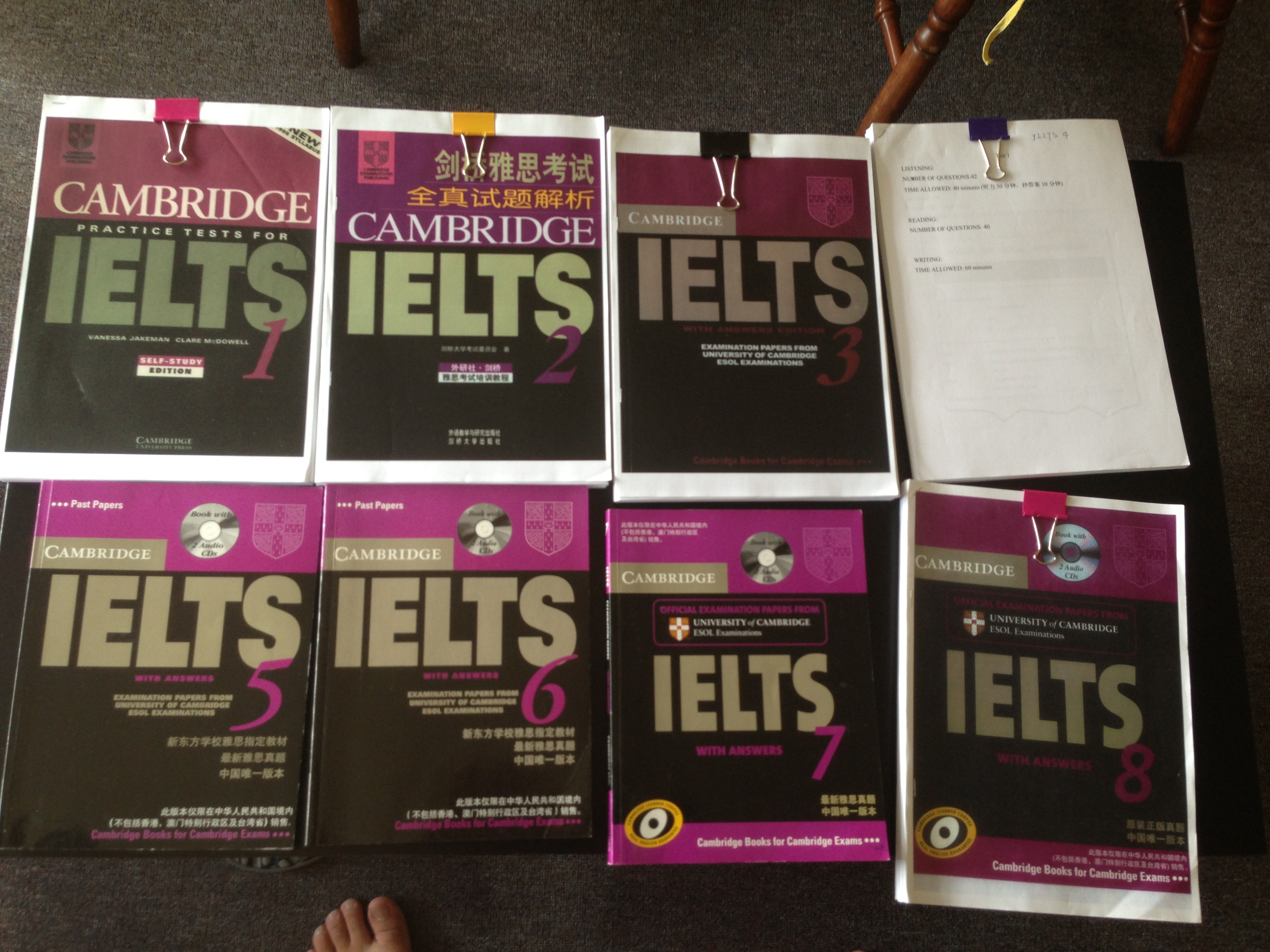 本帖最后由 sd03415 于 2013-3-13 21:19 编辑 剑桥雅思1-8,其中5,6,7是正版带听力光盘,其余是打印版,听力可以从网上下载(mp3)。全部打包$30. QQ:417509946 电话:0425140418(text message onl ...
