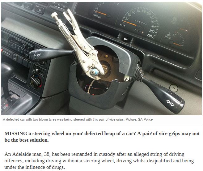 没有方向盘! 用老虎钳~~ HOLDEN HILL警察抓到的如此开车牛人!