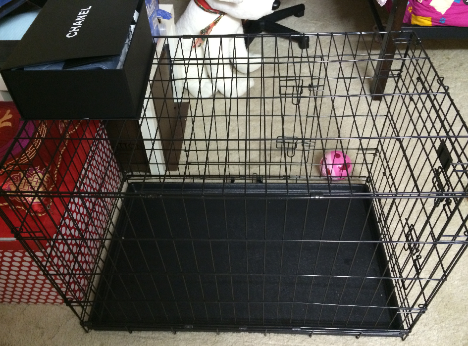 | 哎呦 好可爱的宝贝儿 这个笼子 你可以上网找进笼训练 那个训练可以很好的改善她跟笼子的关系 笼内饲养的狗狗 会对笼子依赖程度很高 其实对狗狗来说是好事情 空间小 安全感更大 |