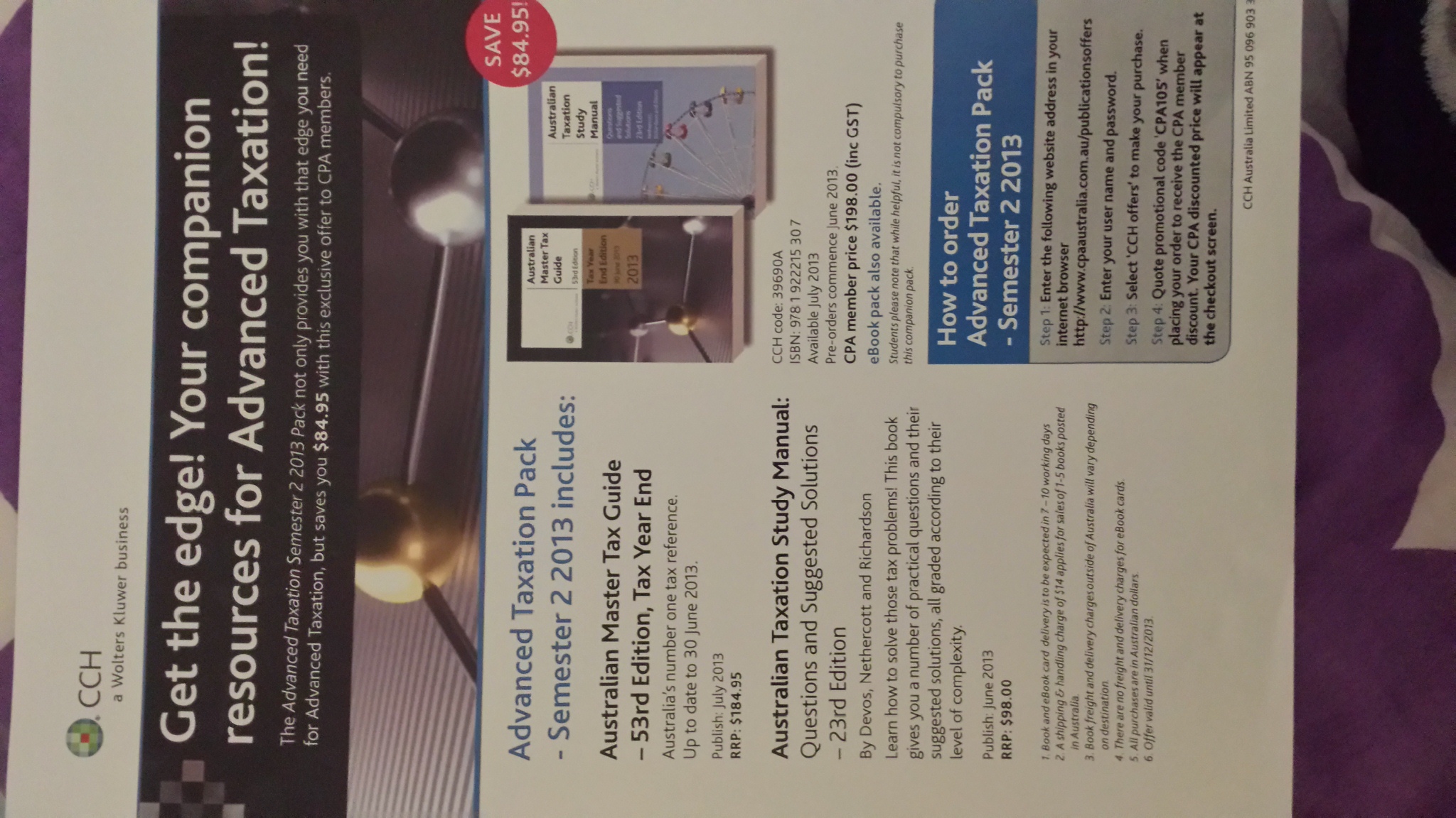 本帖最后由 carolwei 于 2013-10-26 11:15 编辑 全新Australian Master Tax Guide and Study Manual 53rd edition. 复习时间不够就完全没看过。适合下学期 enrol CPA Advance Taxation的同学. 原价$198. $100两本 ...