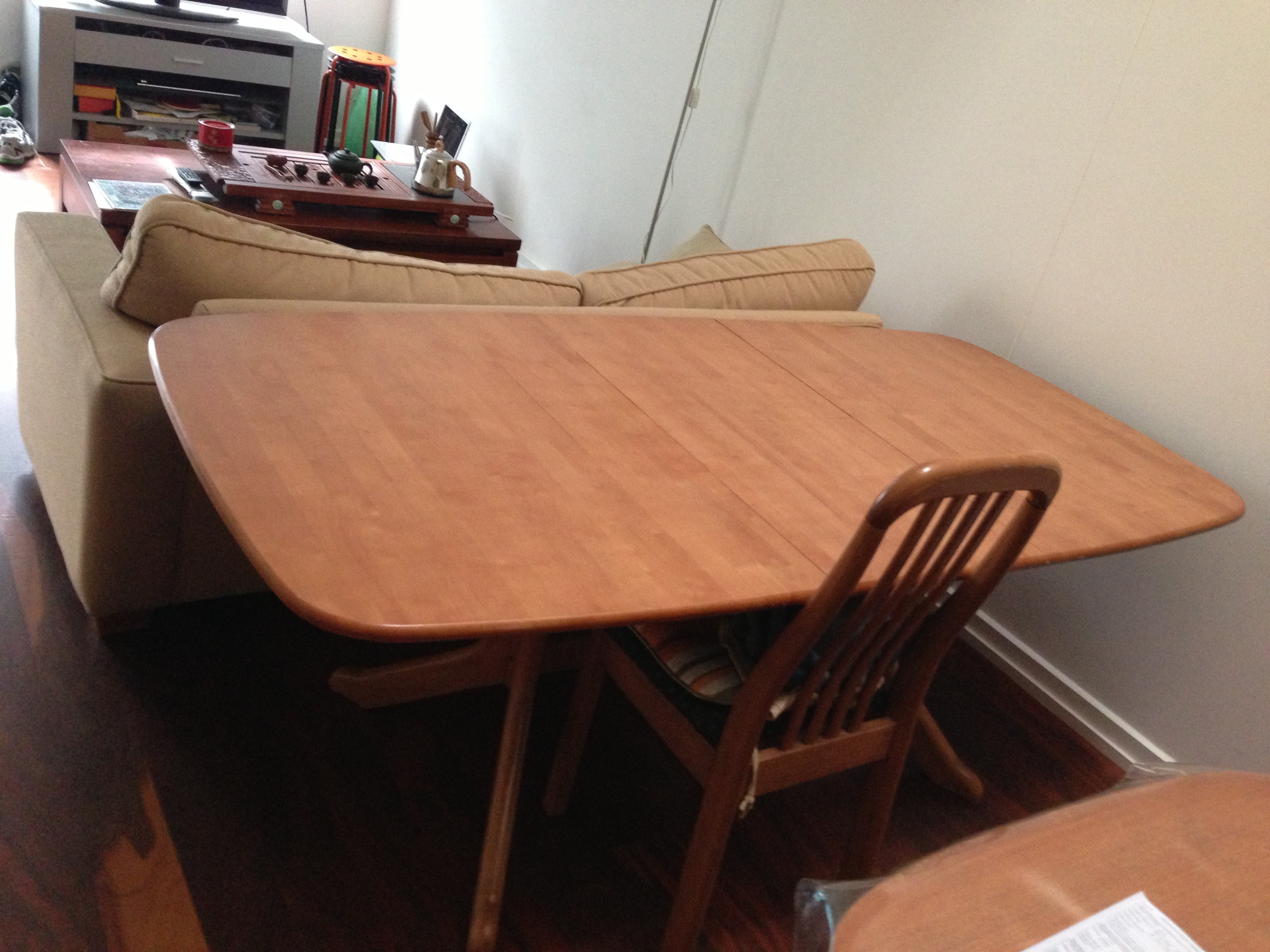 全实木桌子便宜处理60,可以加长和缩短,加长可以到2米,平时是1.5米,很有两把椅子 &nb ...